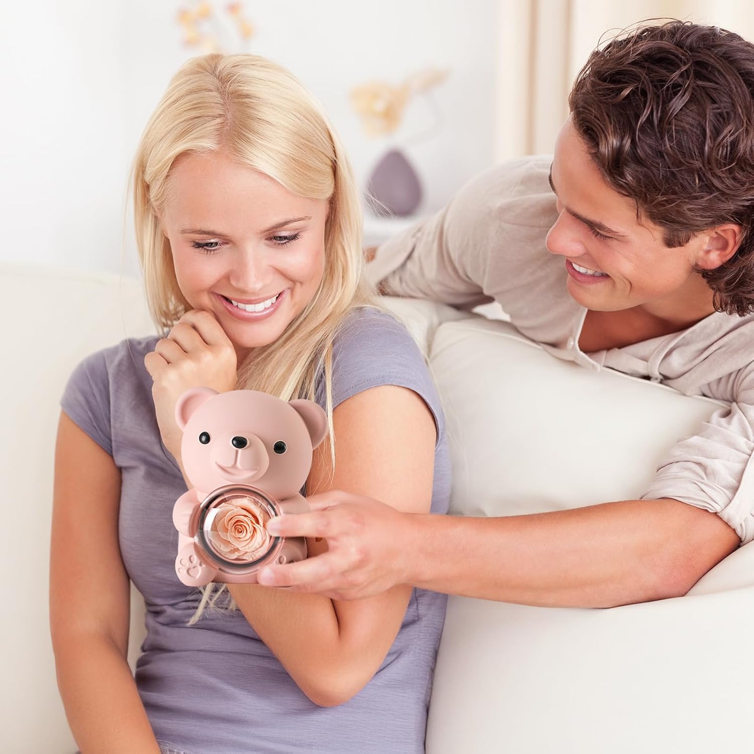 - 💖 Unique & Cute Bear Design: The adorable teddy bear holds a stunning preserved rose inside a transparent plastic cover. Rotate the golden heart-shaped knob to reveal a hidden jewelry box behind the rose, adding an element of surprise for your beloved one!