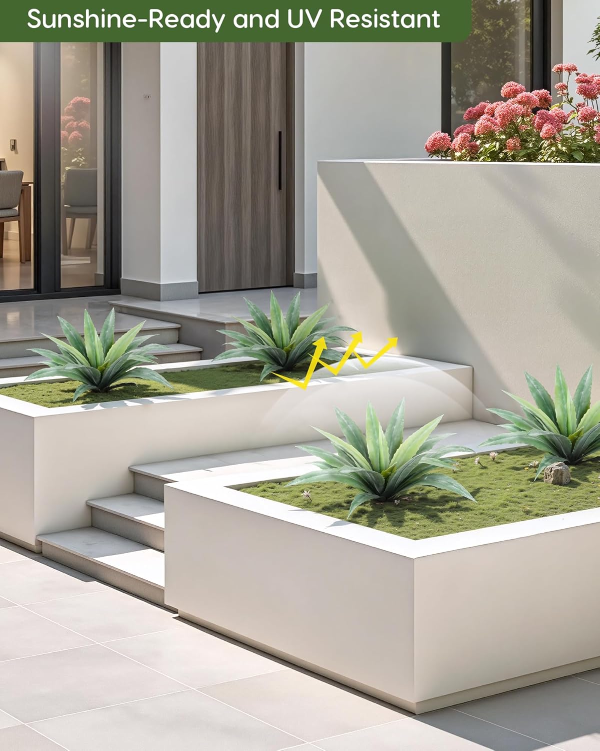 - Sunshine-Ready and UV Resistant: Our artificial agave features special UV-resistant materials, ensuring it can withstand direct sunlight without losing its vibrant appeal. Whether facing blazing summer rays or drizzly days, this plant retains its striking appearance, effortlessly showcasing its beauty throughout the seasons.