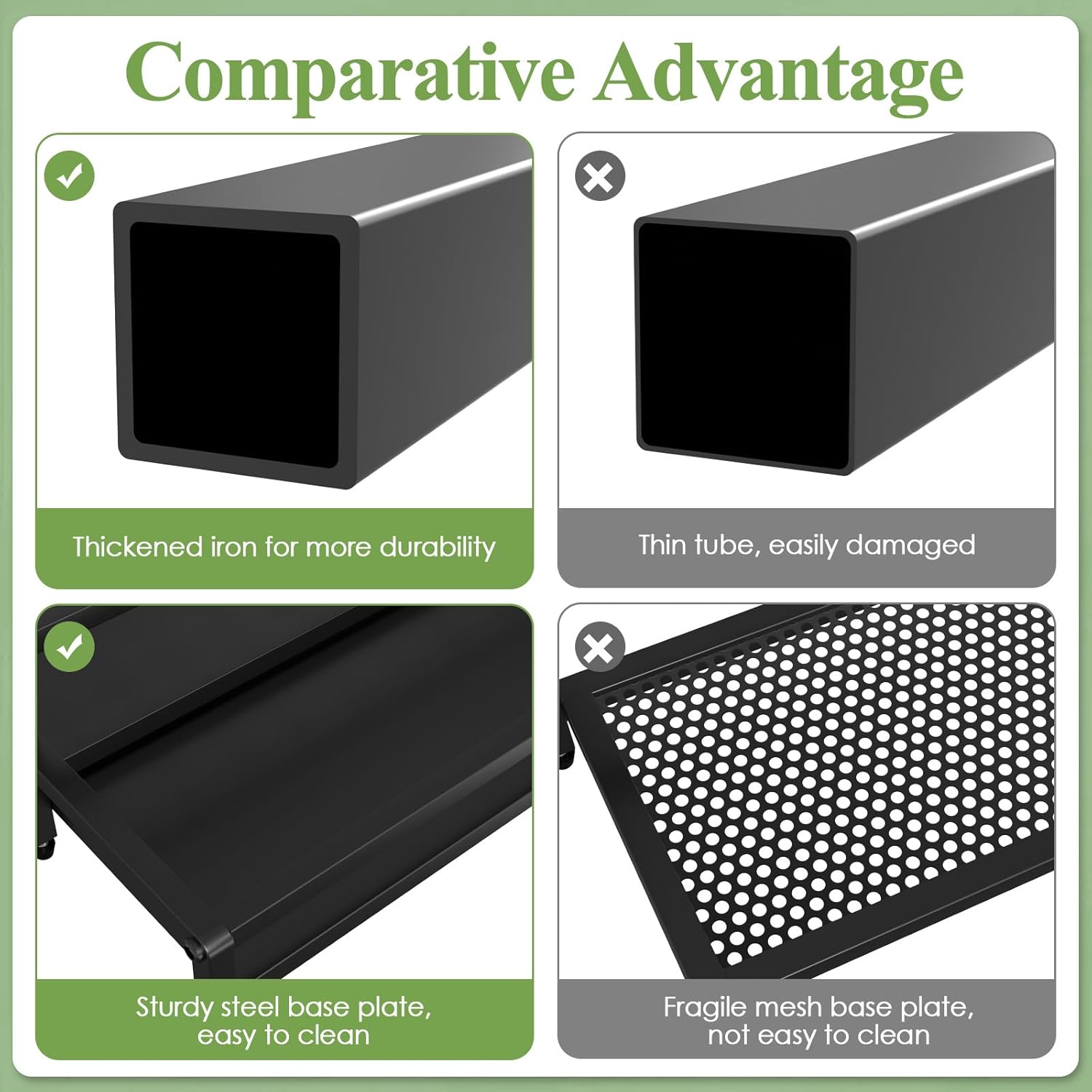 - Garden Tool Organizer: This gardern tool organizer for garage measures 27.6"(L) x 21.65"(W) x 27.6"(H). Gardern tool rack is made of durable coated steel, stable and sturdy. It is rust-resistant and corrosion-resistant, robust enough to endure use both indoor and outdoor.