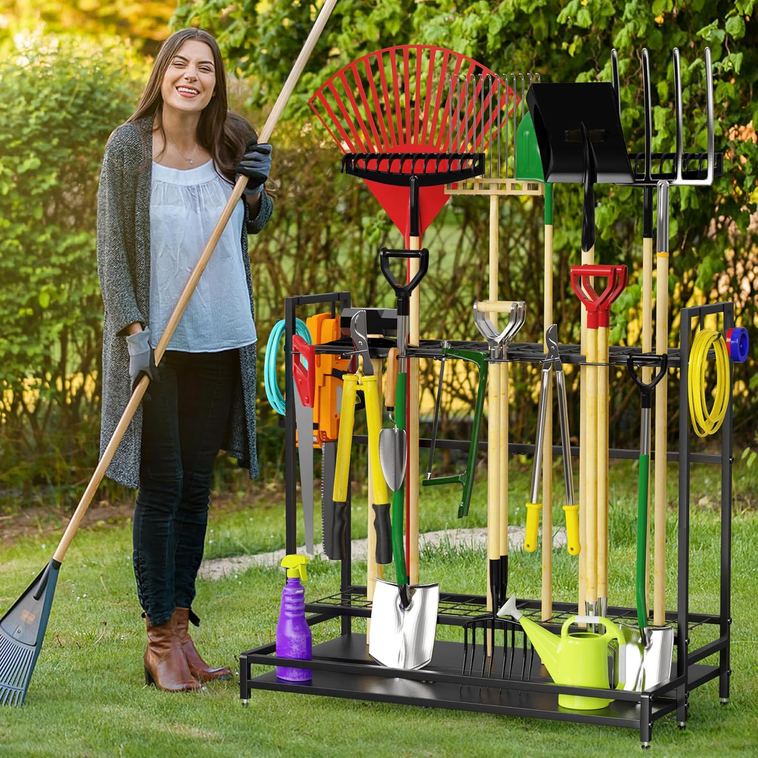- Multiple Garden Tool Storage: garden tool rack is versatile for use in places such as garages,gardens,sheds and yards.The organizer for gardening tools simplifies the classification,arrangement and utilization of tools