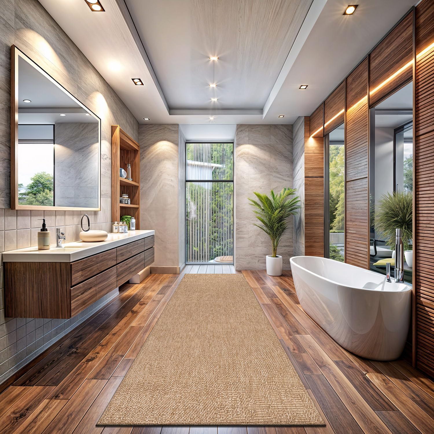 Washable Easy Jute Rug 2x7, Indoor Outdoor Runner Rugs, Natural Color Farmhouse Area Rugs for Living Room, Kitchen Rug High Traffic Area, Easy to Clean Solid Boho Woven Design Carpet (2 X 7 Natural)