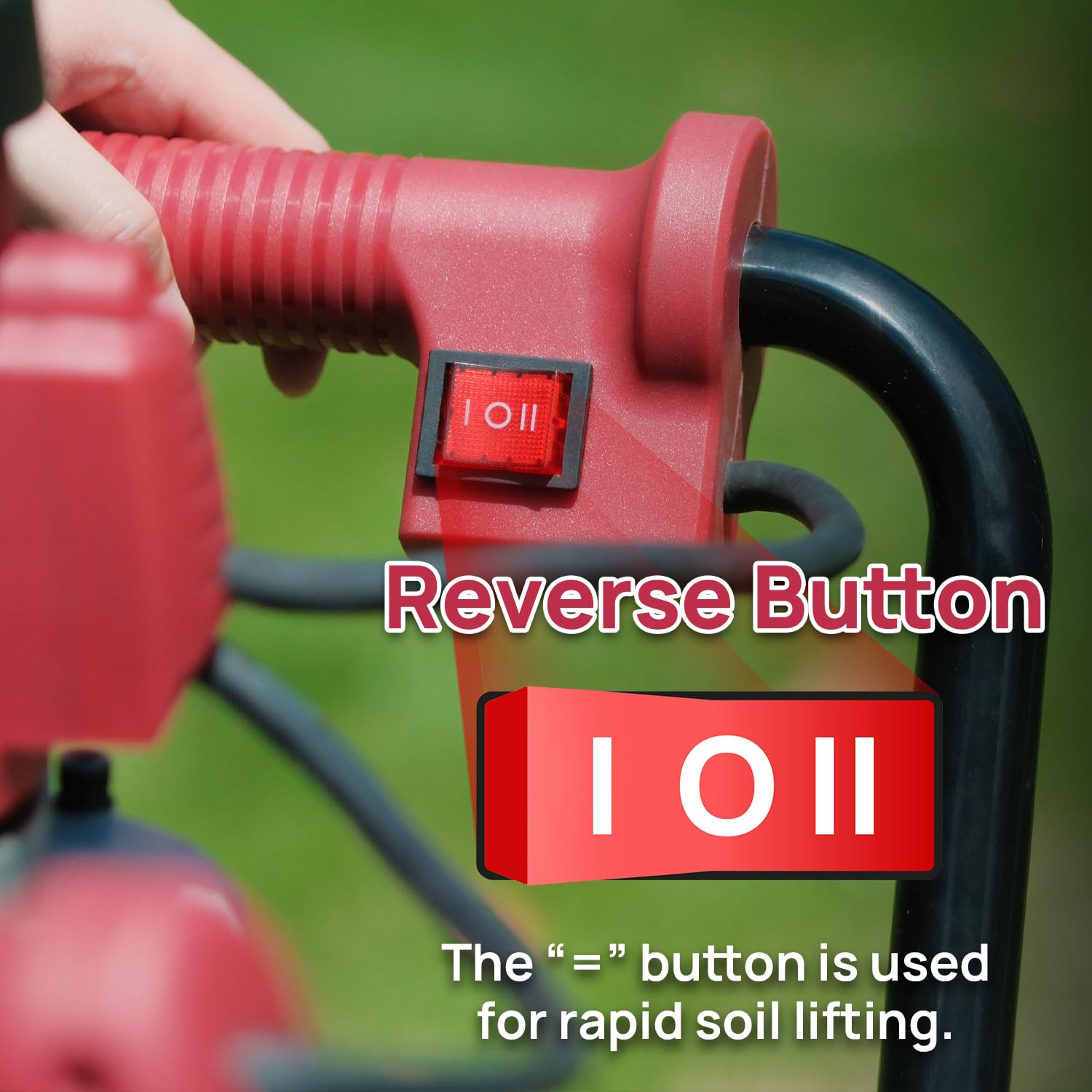 - Reverse Functionality: With the button in the "II" position, the reverse function is activated, allowing for quick soil removal and maximizing work efficiency.