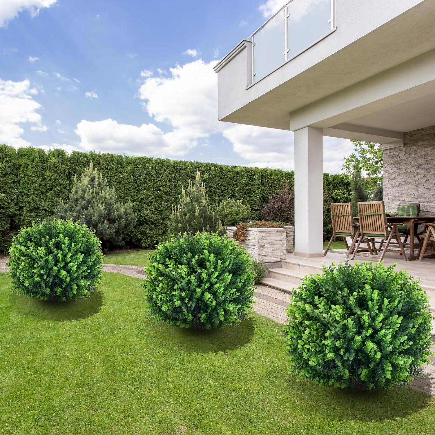 - ăEffortless Outdoor Greeneryă Enhance your space instantly with these outdoor artificial trees UV resistantâsimply place the artificial topiary stems in soil or pots for a lush look. Perfect as curb appeal plants or paired with faux eucalyptus trees for a natural vibe.