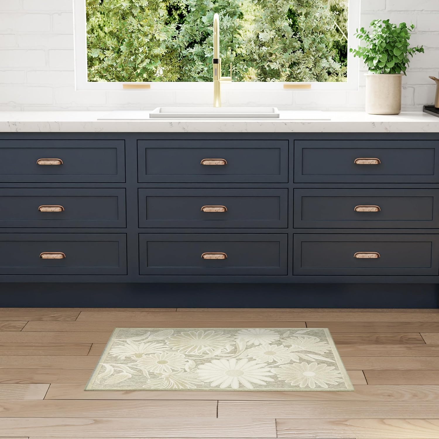 Nourison Aloha Ivory Sage 2'8" x 4' Area Rug - Easy Clean, Non Shedding, Bed Room, Living Room, Dining Room, Kitchen (3' x 4')