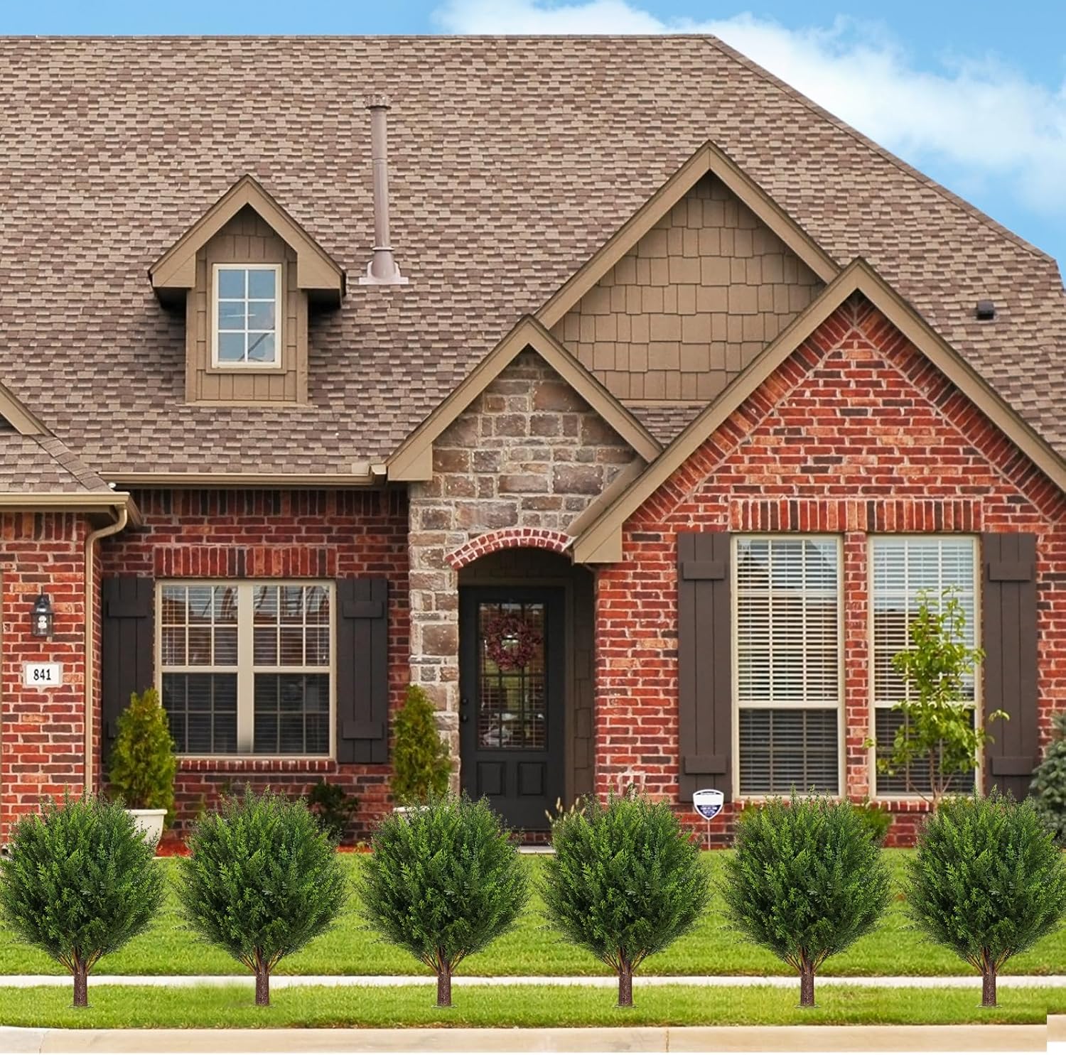 - ăMulti-medium Decoration ChoiceăThis outdoor artificial plant cedar ball tree is realistic looking, each simulated shrub plant comes with high quality black ground spikes, you can put them into any matching pots or insert them directly into the soil, which can better match the style of your house