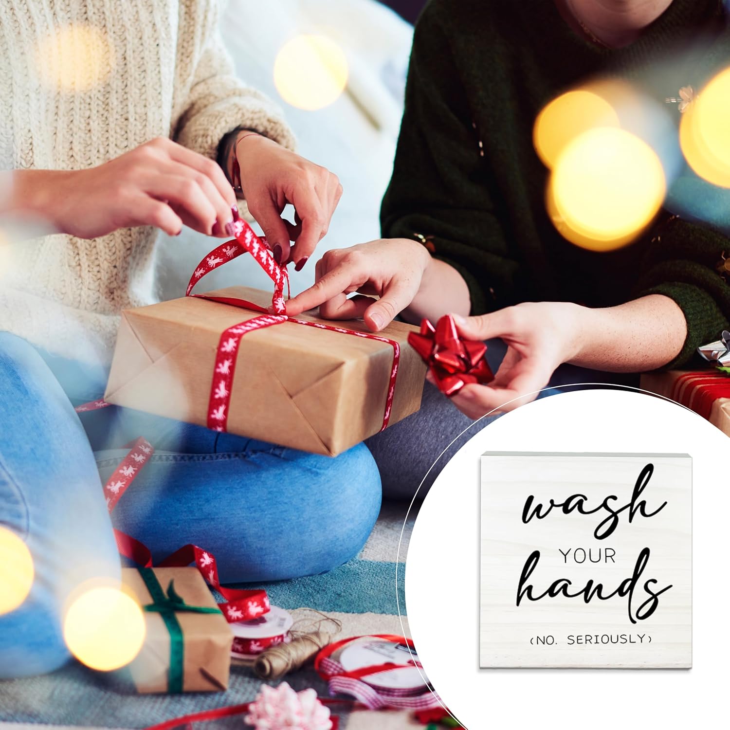 Wash Your Hands No Seriously Wooden Sign - Funny White Block Plaque Desk Decoration-5x5 inches Rustic Wood Block Gifts For Friends Family Coworkers-Restroom Bathroom Tabletop Favors & Supplies-A05