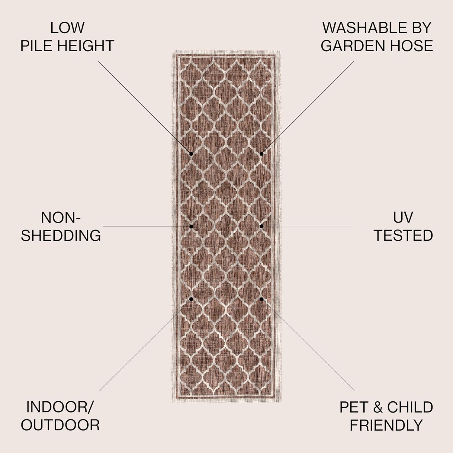 Eyely BMS109B-220 Santa Monica Trebol Moroccan Trellis Textured Weave, Pet Friendly, Non-Shedding, Stain Resistant, Easy-Cleaning, Espresso/Taupe, 2 ft. x 20 ft., Indoor/Outdoor, Runner Rug