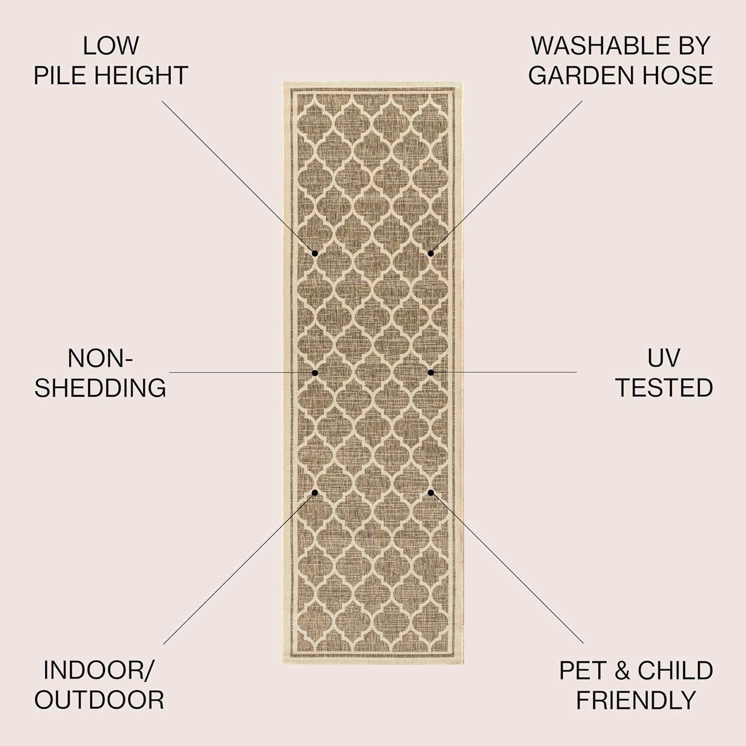 Eyely BMS109A-214 Santa Monica Trebol Moroccan Trellis Textured Weave, Pet Friendly, Non-Shedding, Stain Resistant, Easy-Cleaning, Brown/Beige, 2 ft. x 14 ft., Indoor/Outdoor, Runner Rug