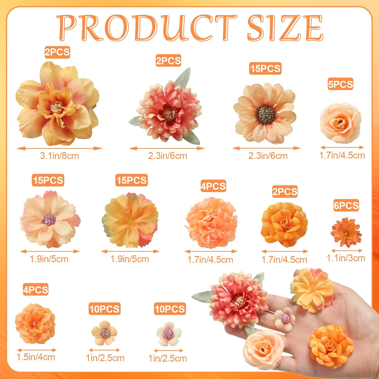 - Seasonal Warmth & Decorative Charm: The rich orange palette evokes autumn coziness while complementing year-round themes. Pair it with neutral tones for minimalist elegance or bold colors for festive cheer. Perfect for fall weddings, adorn graduation caps, harvest celebrations, or enhance home decor such as centerpieces, wreaths, and wall art.