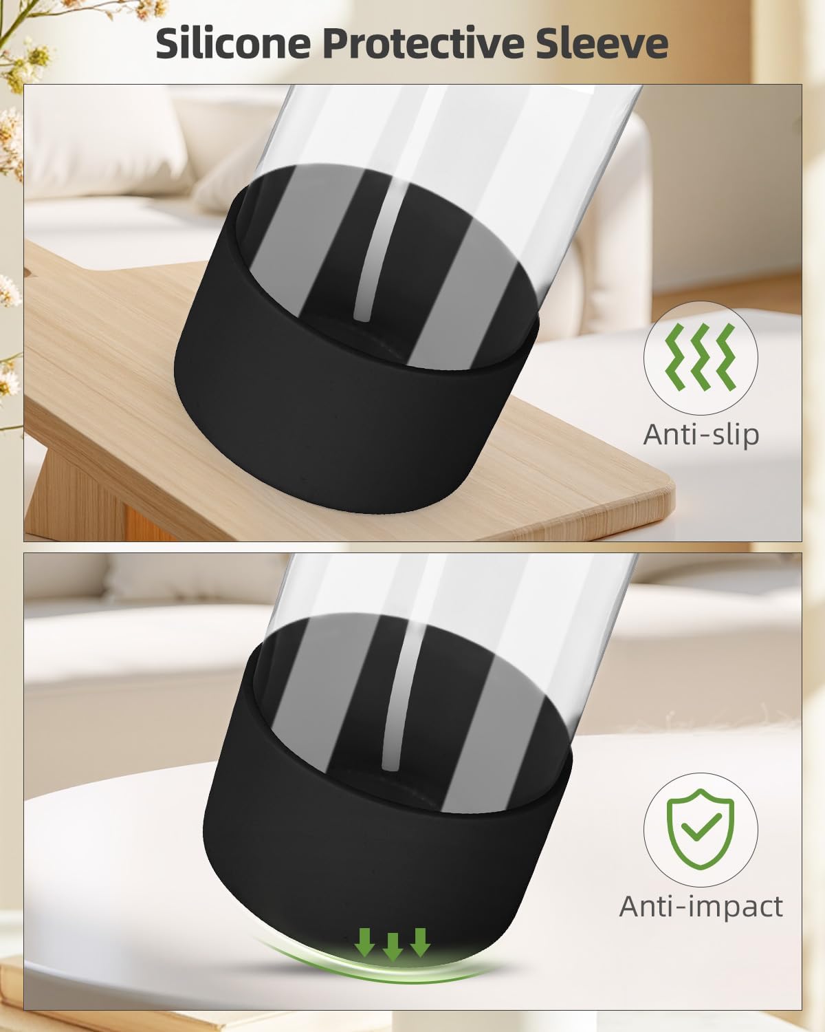 - Premium Glass & Sturdy Silicone Sleeve: Crafted from high-transparency glass, our glass cleaning bottles offer a clear view of liquid levels, ensuring effortless monitoring and usage. The included silicone sleeve ensures minimizing the risk of breakage and slips, making it safe for daily use.